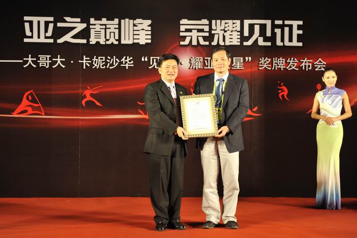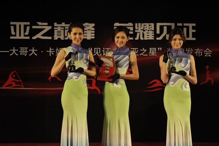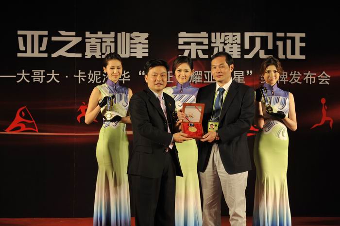 2010年11月10日,广州——随着亚运进入最后48小时倒计时,由卡妮沙华国际有限公司为2010年广州亚运会中打破世界纪录的冠军运动员和团体精心打造的“见证.耀亚之星”镶钻奖牌发布会在卡丽酒店举行了盛大的发布仪式,旨在鼓励亚洲体育健儿征服梦想,追求完美的精神。亚组委市场开发部方达儿部长,卡妮沙华(KARLSSAFARE)国际所属集团公司-大哥大集团有限公司总经理徐家逊以及我国著名运动员,前亚运冠军皱振先和郑达真夜出席了此次发布会。