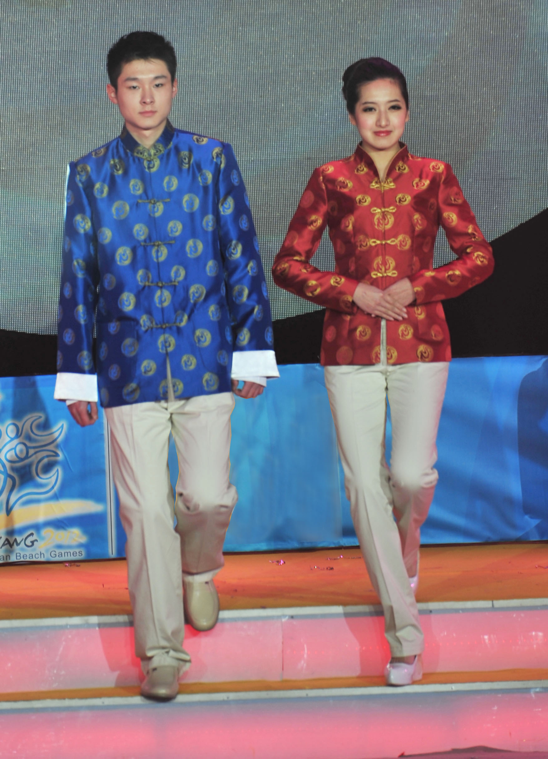 据悉,亚沙会官方礼仪、正装制服由2010年3月开始投入设计创作至今历时一年,由亚沙会各级领导、山东文化界人士、服装专家团组成服装审核小组对服装的严格审核,最终在众多的设计方案中选定了广东大哥大集团的设计总监、广东省十佳设计师刘健君的设计创作。曾获亚运“杰出贡献奖”的设计师刘健君继“亚运会”之后又一倾力之作。