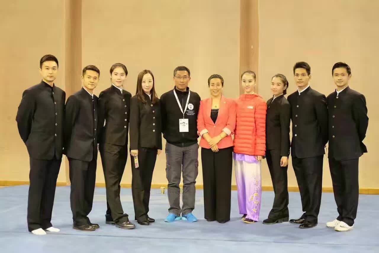 中国国家武术队(太极)身披大哥大集团研制的武术正装,征战2016波兰-华沙第二届世界太极拳锦标赛,为国争光共获8金,祝贺广东省武术中心运动员杜昊滢获女子太极剑冠军。